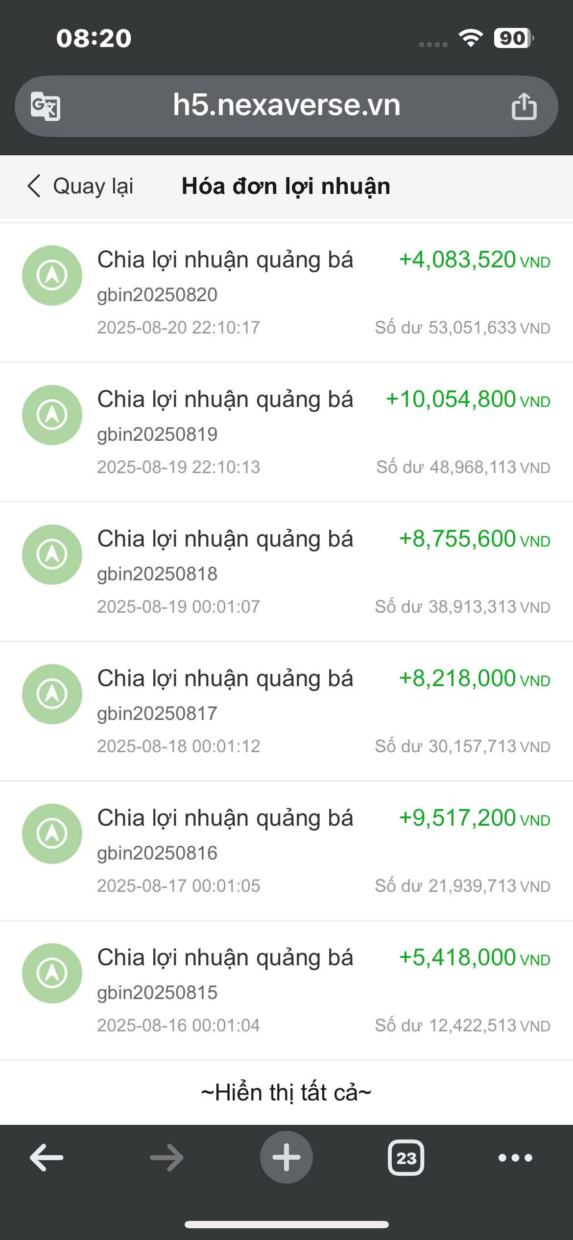 “Thấy bạn bè giới thiệu mình cũng tham gia săn vé vì cả nể mất 5 lần quay đều trượt nhưng hay cái là cứ trượt là mình lại thấy tiền được trả về tài khoản. Kèm theo 1 khoản lợi nhuận nhỏ sau 5 lần thì mình trúng được 1 vé, công việc qua bận nên mình chưa có thời gian đi xem ai ngờ mỗi ngày lại có lợi nhuận được chia về. Chưa nhiều nhưng mình thấy vui vui. 280k chỉ bằng vài lý nước nhưng giờ mỗi ngày đều có tiền về app.